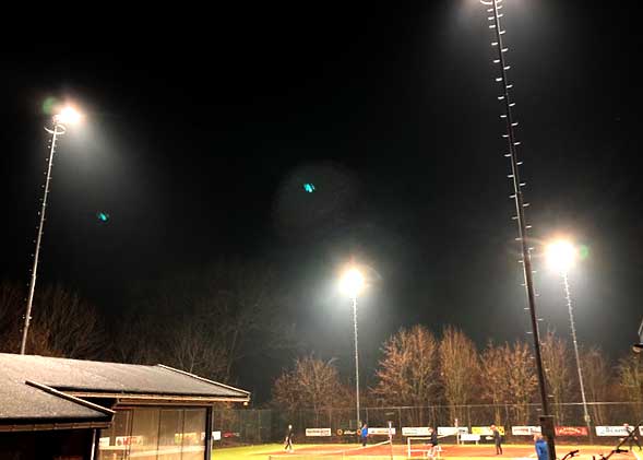 Twee verlichte all-weather kunstgrasbanen
